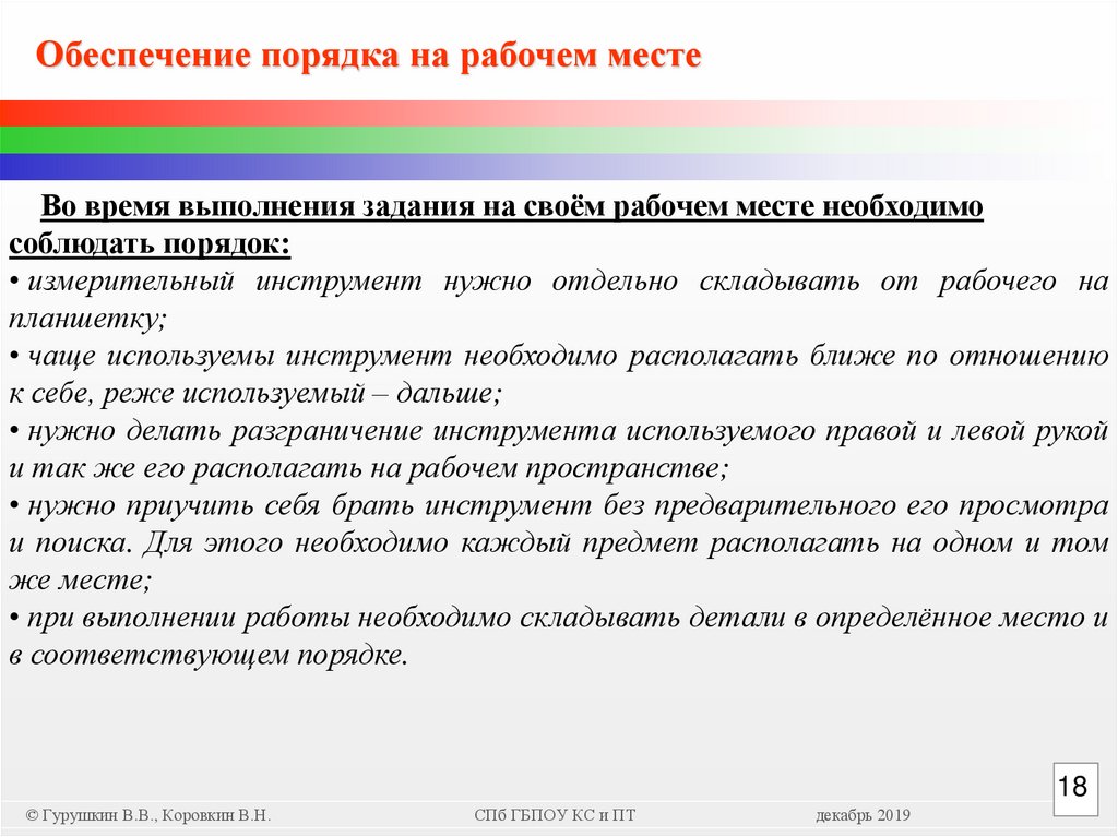 Обеспечение порядка на рабочем местеВо время выполнения задания на своём рабочем месте необходимо