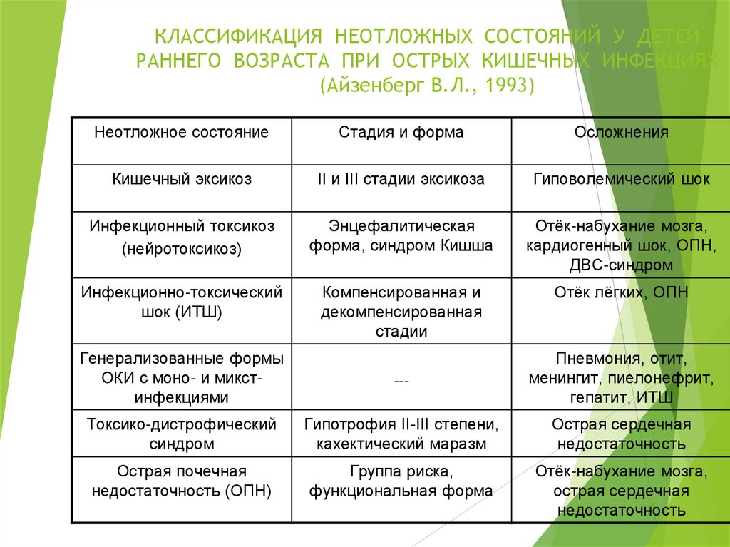 КЛАССИФИКАЦИЯ НЕОТЛОЖНЫХ СОСТОЯНИЙ У ДЕТЕЙРАННЕГО ВОЗРАСТА ПРИ ОСТРЫХ КИШЕЧНЫХ ИНФЕКЦИЯХ