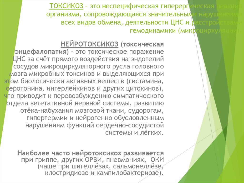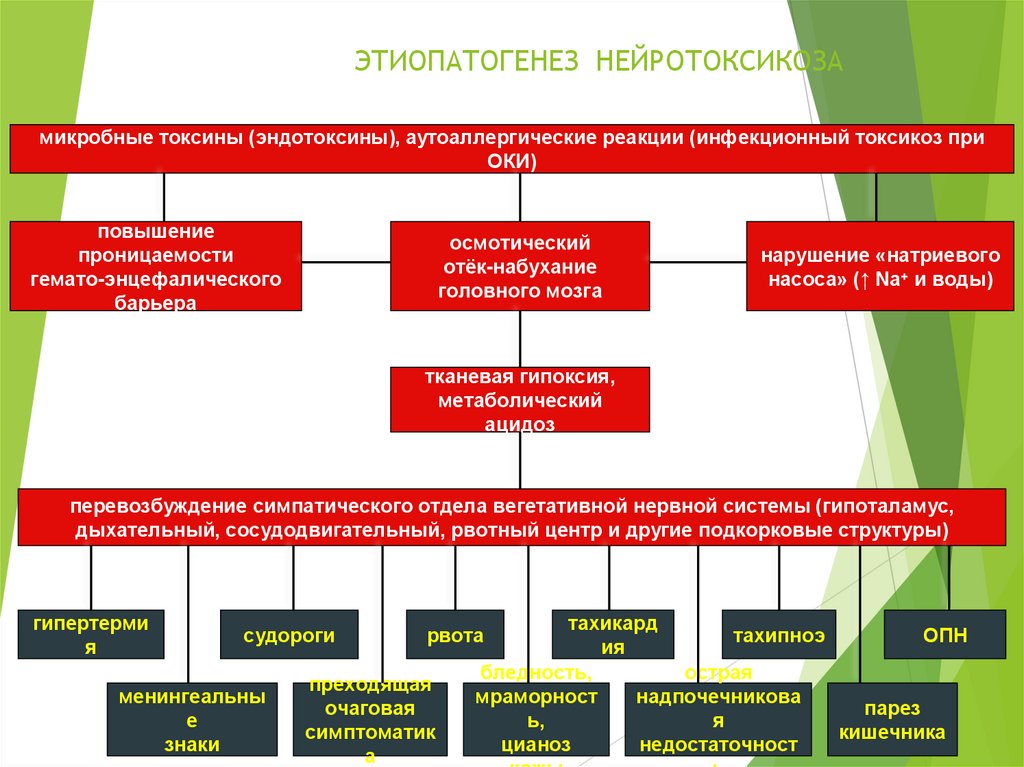 ЭТИОПАТОГЕНЕЗ НЕЙРОТОКСИКОЗАмикробные токсины (эндотоксины), аутоаллергические реакции (инфекционный токсикоз при
