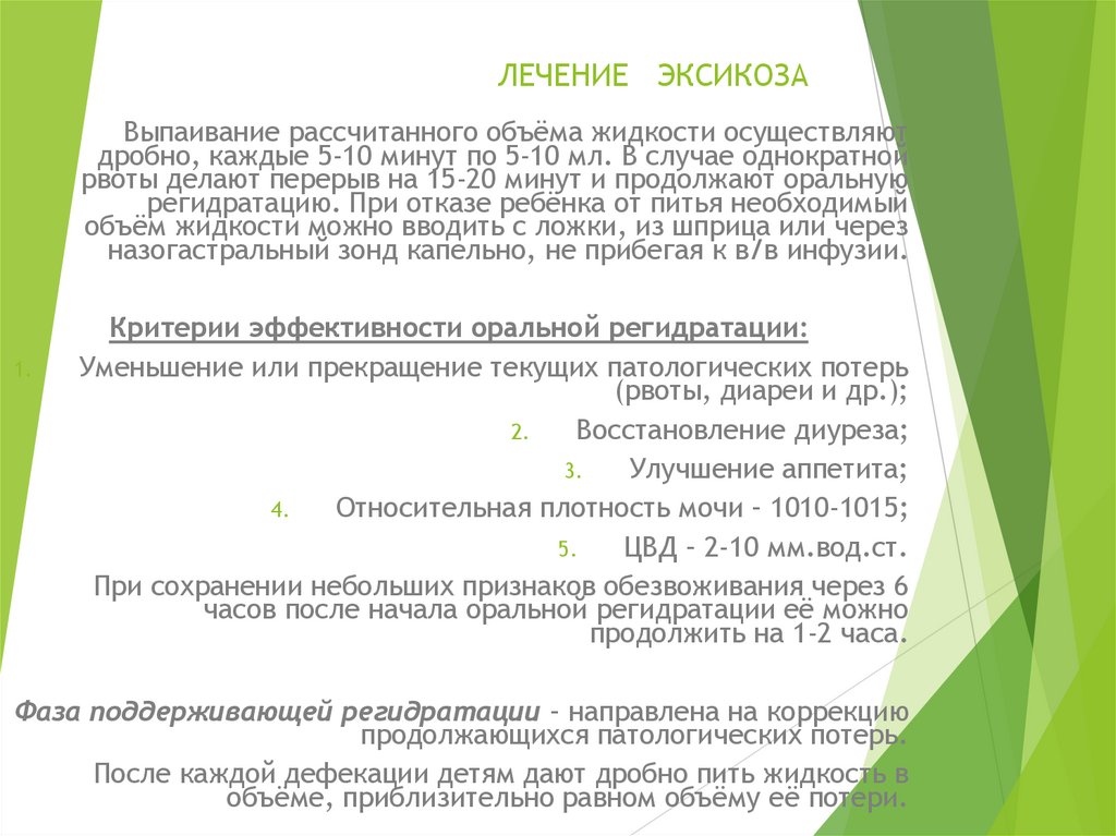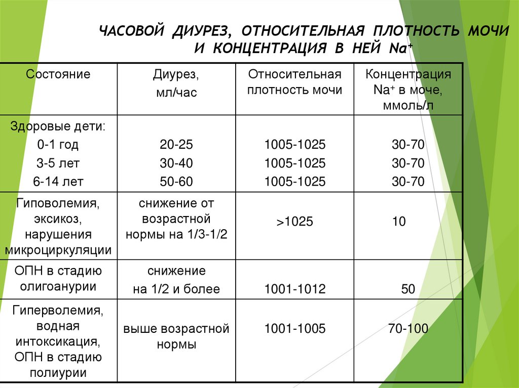 Выход в полиурию у детей до 3-х лет, но не более старшего