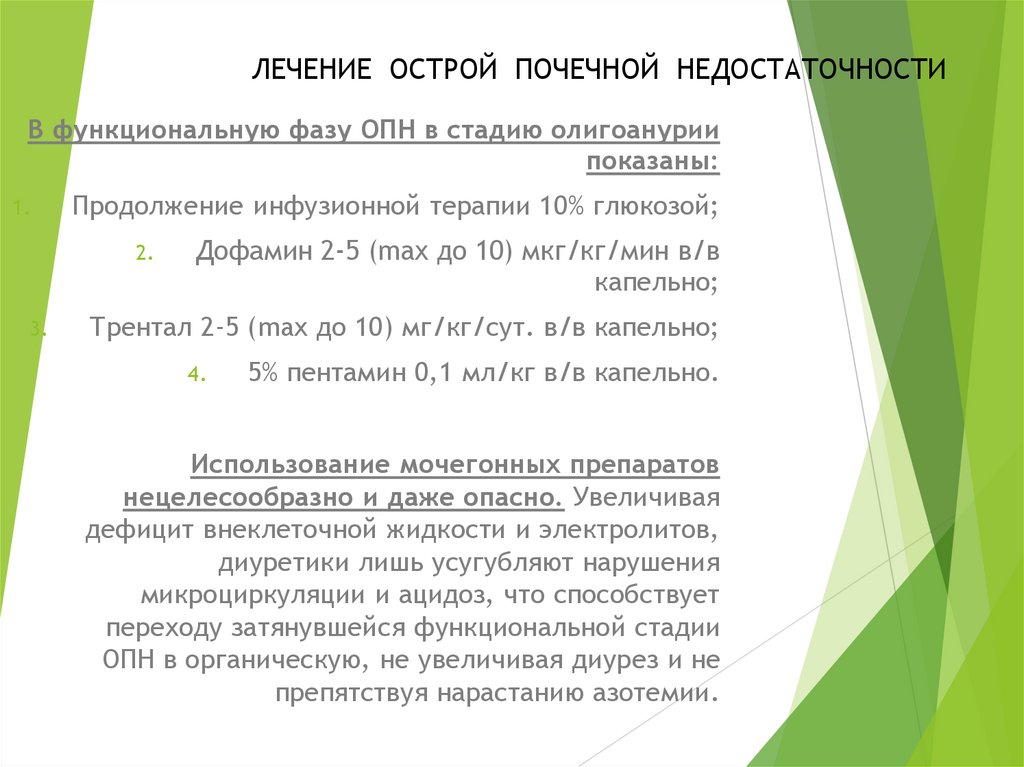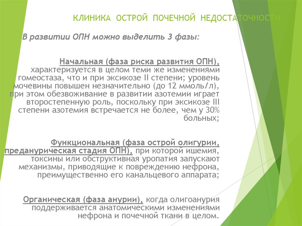 (уровень креатинина и К+ продолжает нарастать, даже если