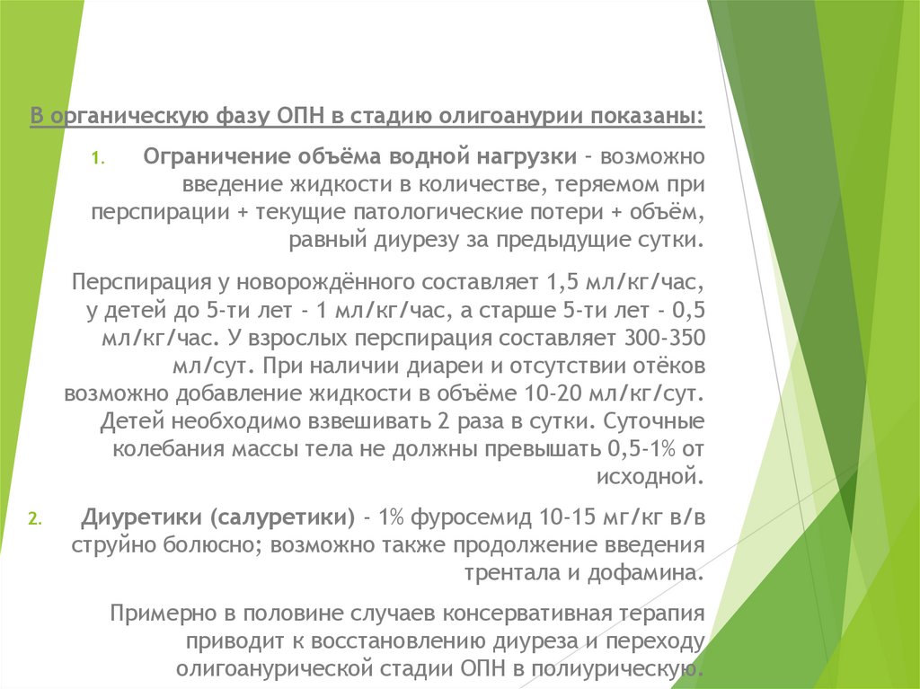 Выделение мочи в стадию олигурии хотя бы в количестве 20-40