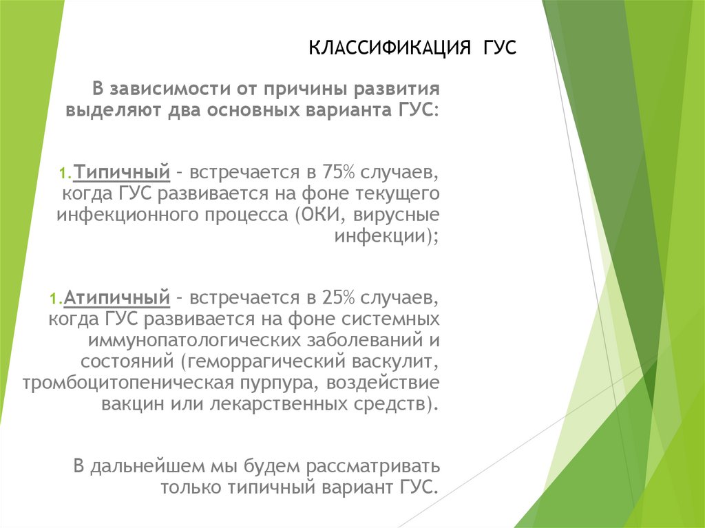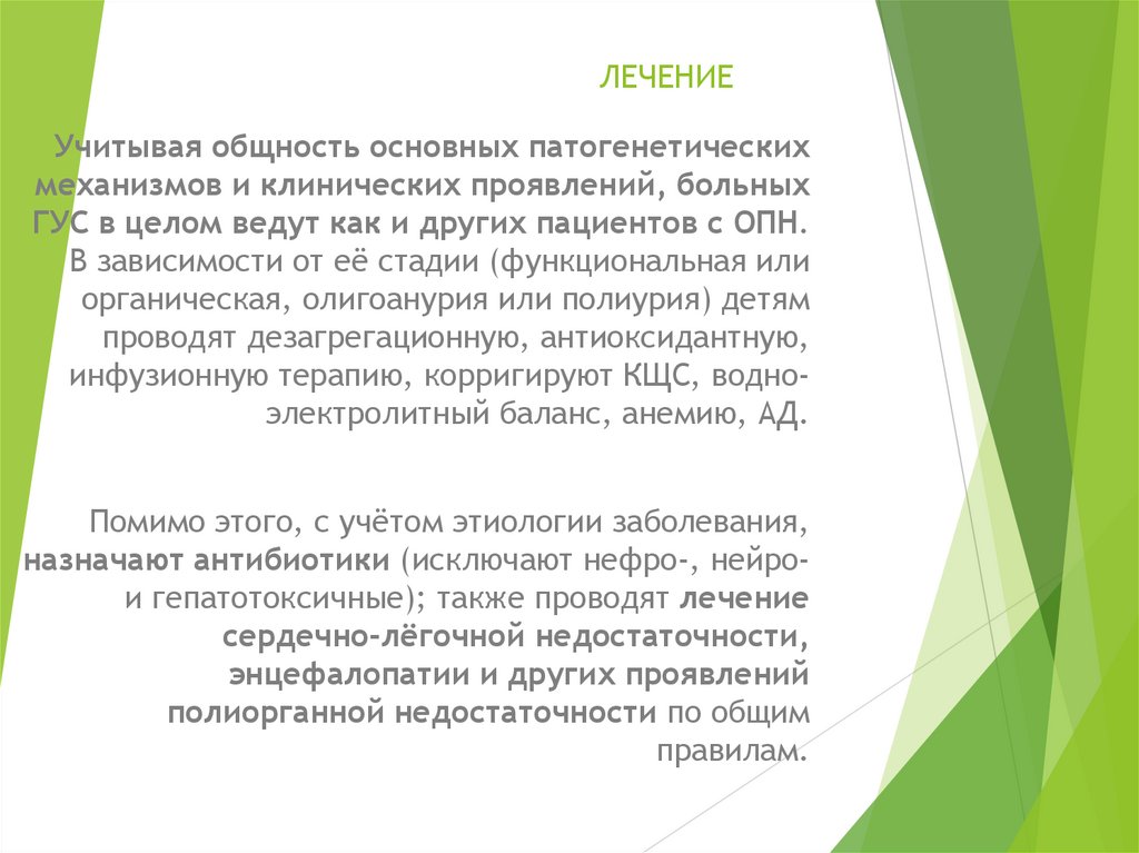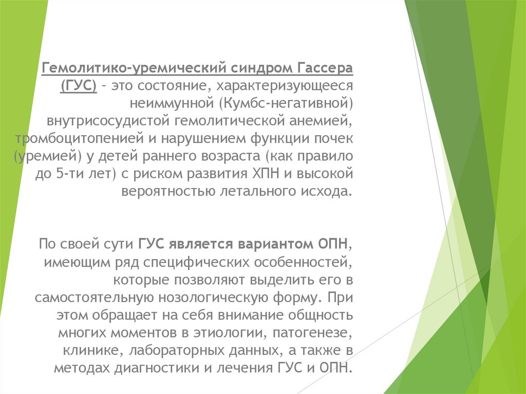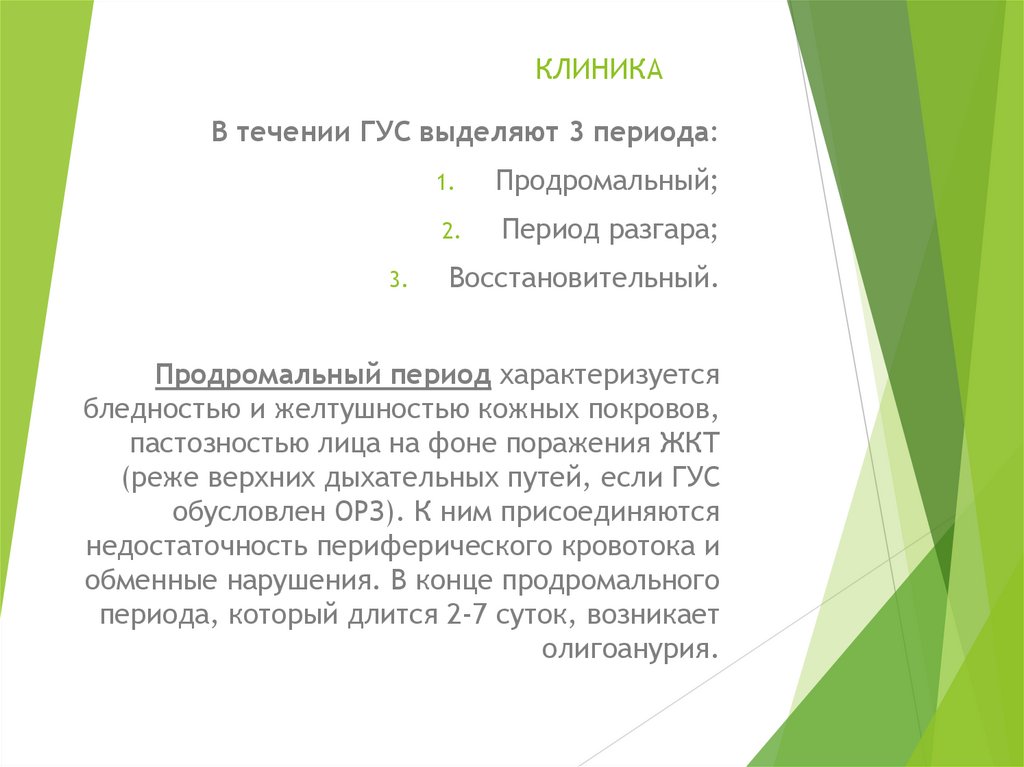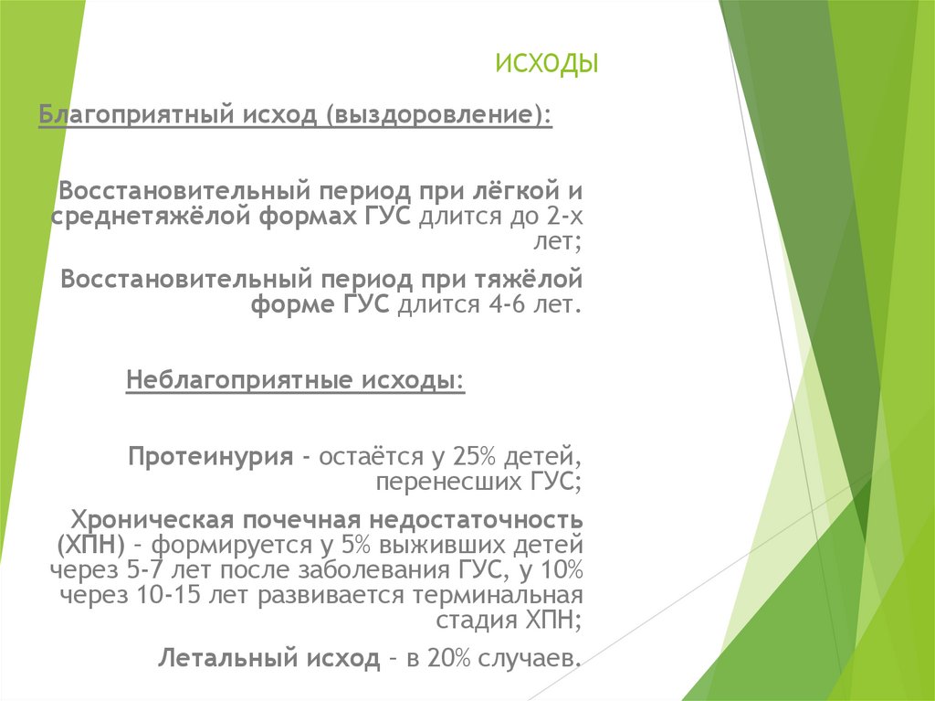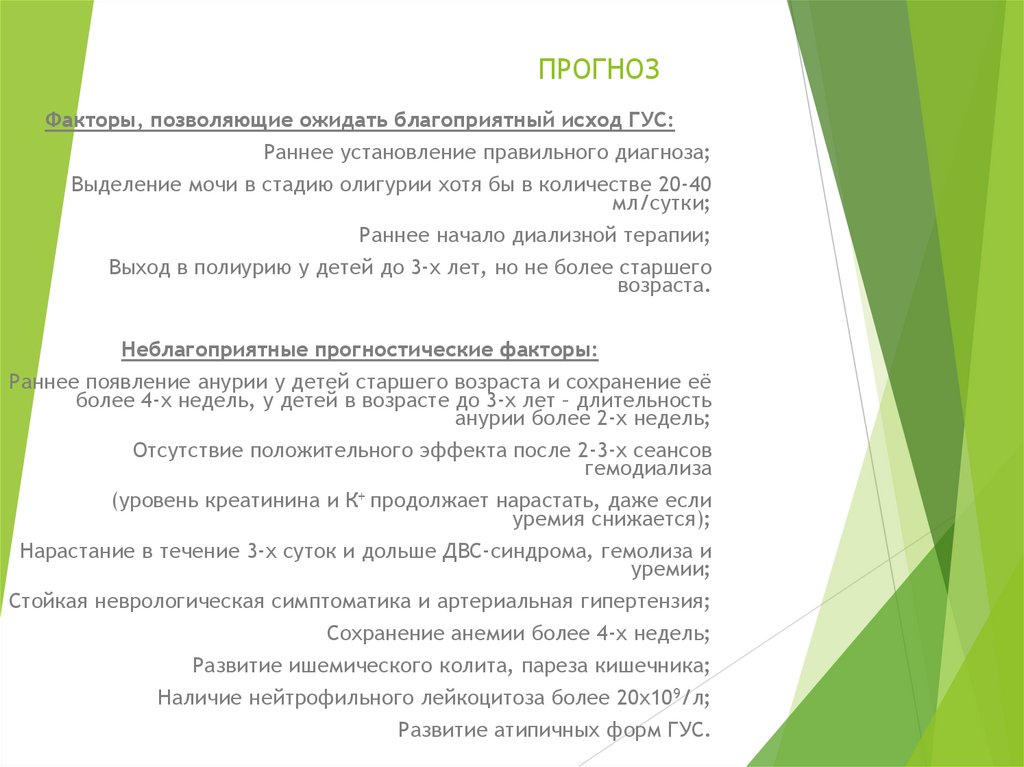 ПРОГНОЗФакторы, позволяющие ожидать благоприятный исход ГУС: