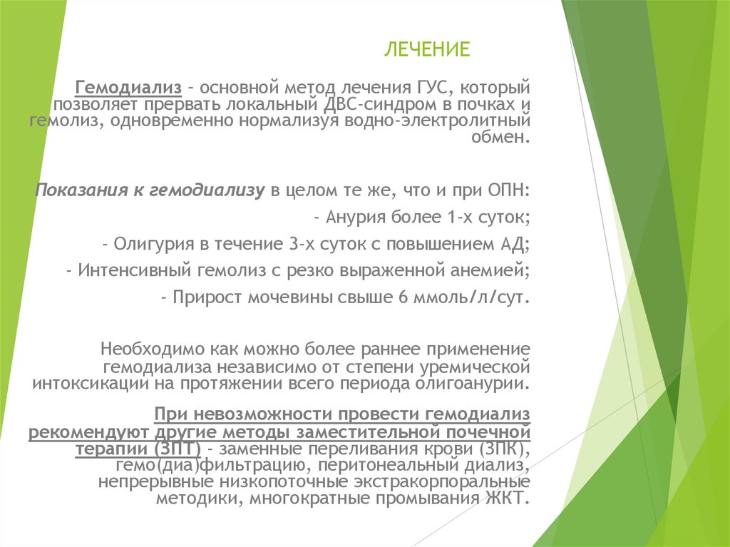 ЛЕЧЕНИЕГемодиализ – основной метод лечения ГУС, который