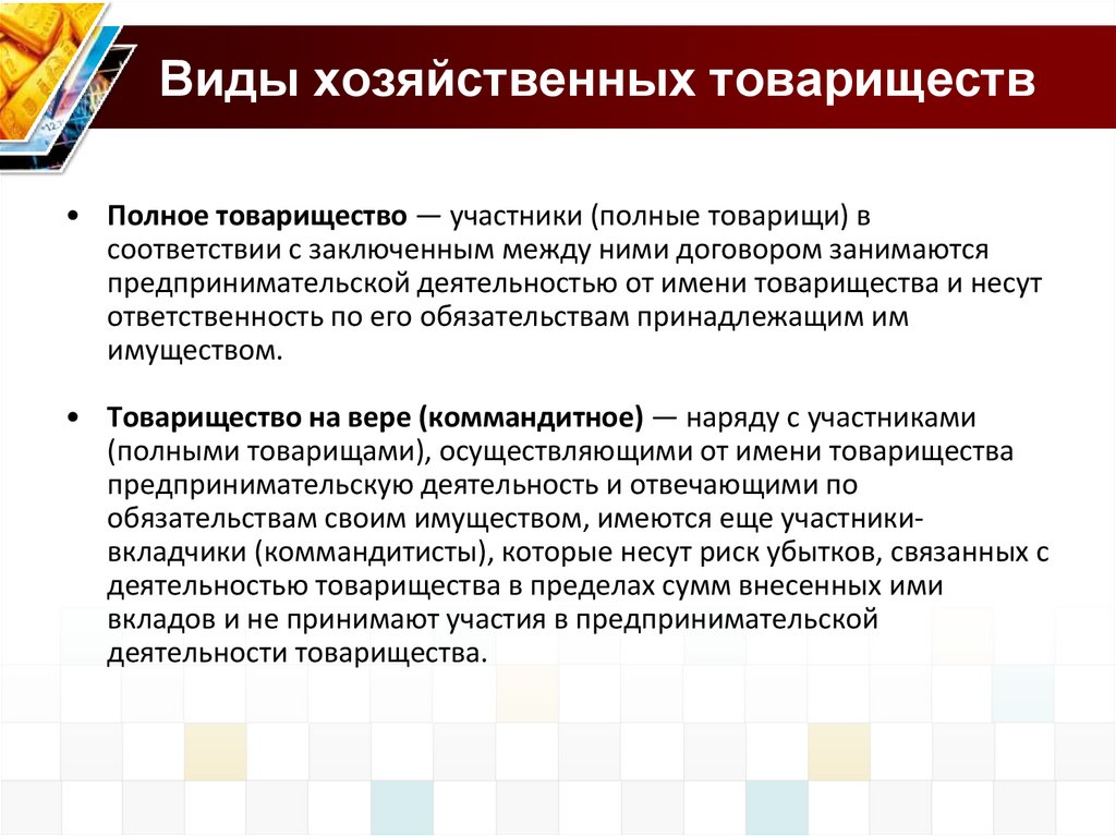 распределение доходов, обязанности сторон.