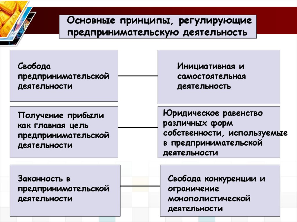 Основные принципы, регулирующиепредпринимательскую деятельность