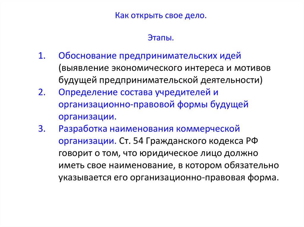 Как открыть свое дело.Этапы.