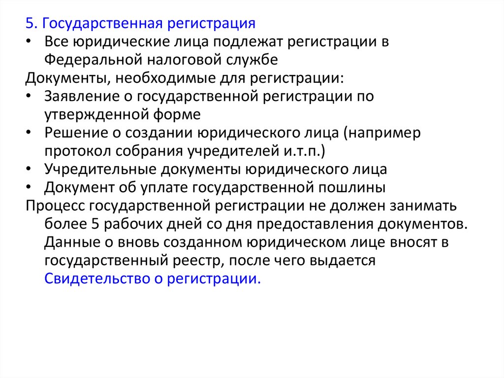5. Государственная регистрация• Все юридические лица подлежат регистрации в