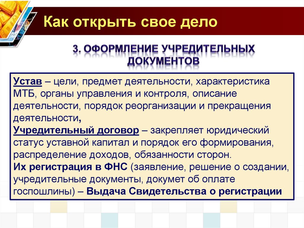 Как открыть свое делоУстав – цели, предмет деятельности, характеристика