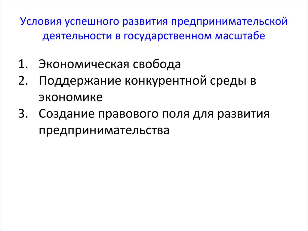 Условия успешного развития предпринимательскойдеятельности в государственном масштабе