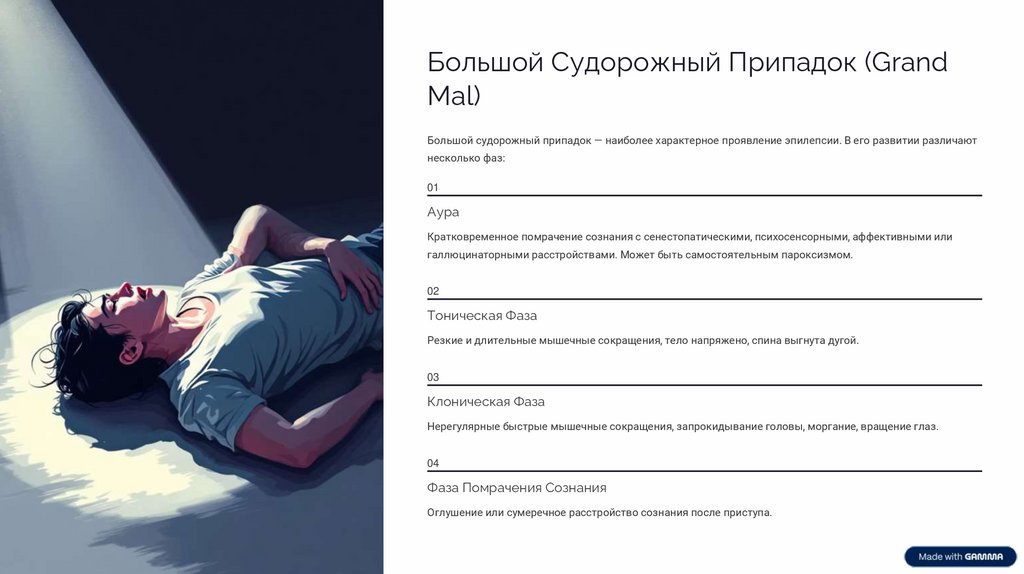 Большой судорожный припадок — наиболее характерное проявление эпилепсии. В его развитии различают