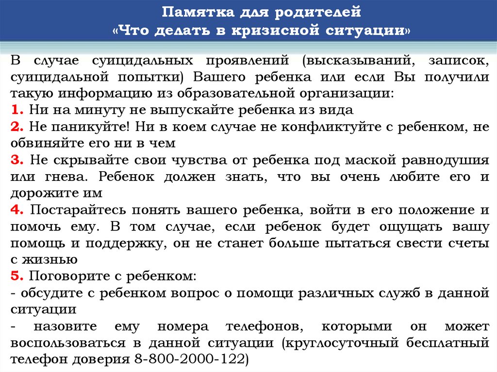 Памятка для родителей«Что делать в кризисной ситуации»