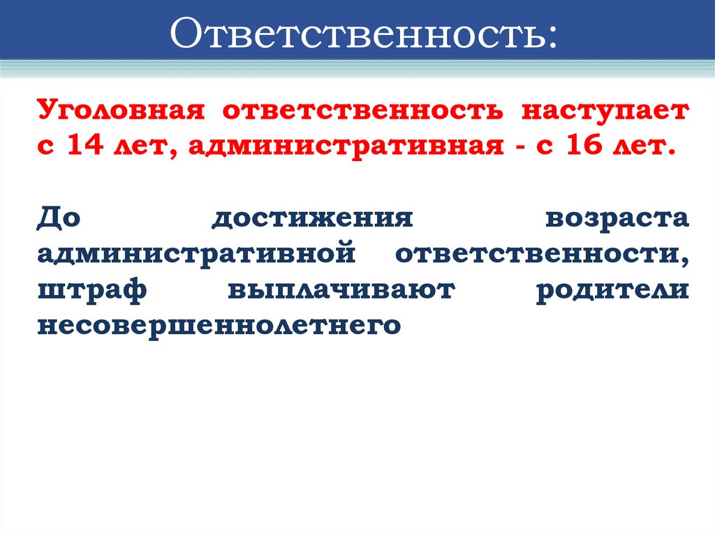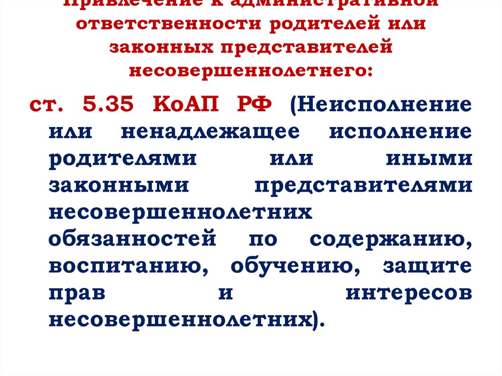Привлечение к административнойответственности родителей или