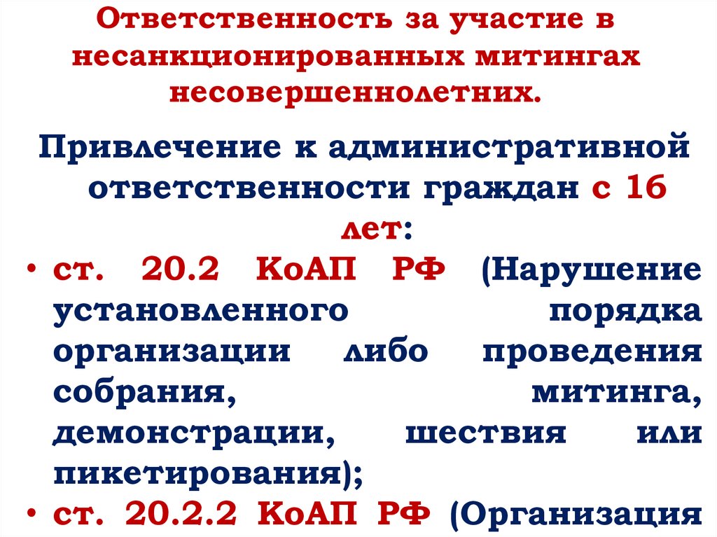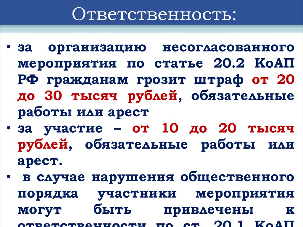 числе участие в несанкционированных