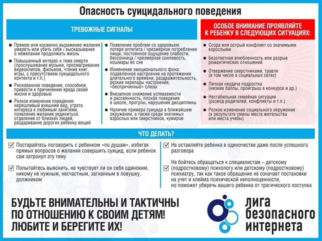 суицидальной попытки) Вашего ребенка или если Вы получили