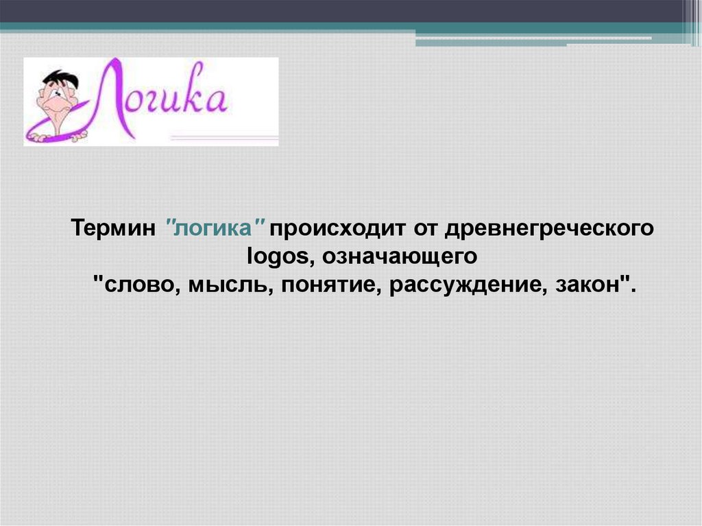 Термин "логика" происходит от древнегреческогоlogos, означающего