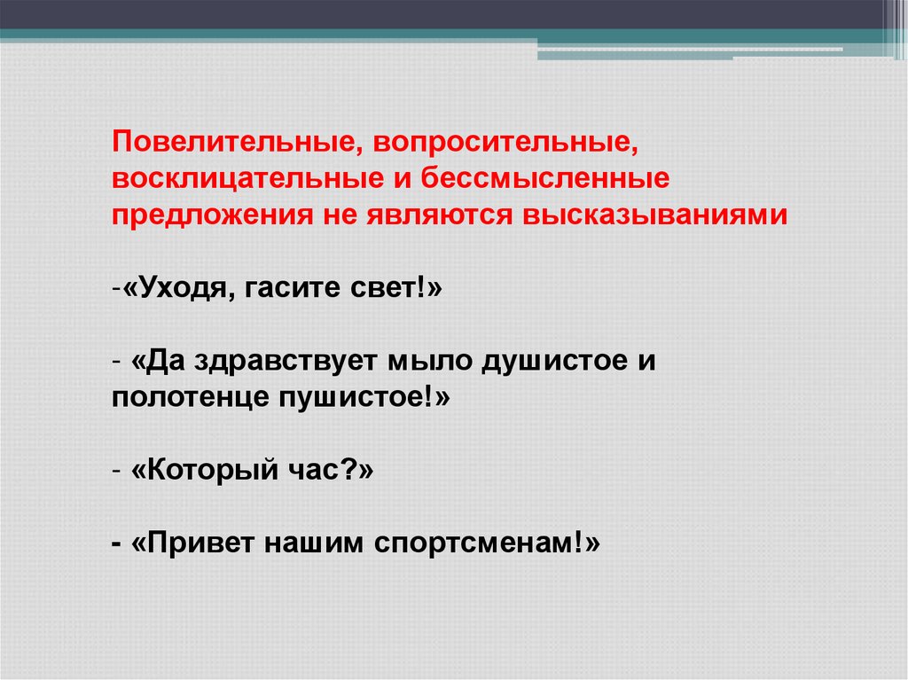Повелительные, вопросительные,восклицательные и бессмысленные