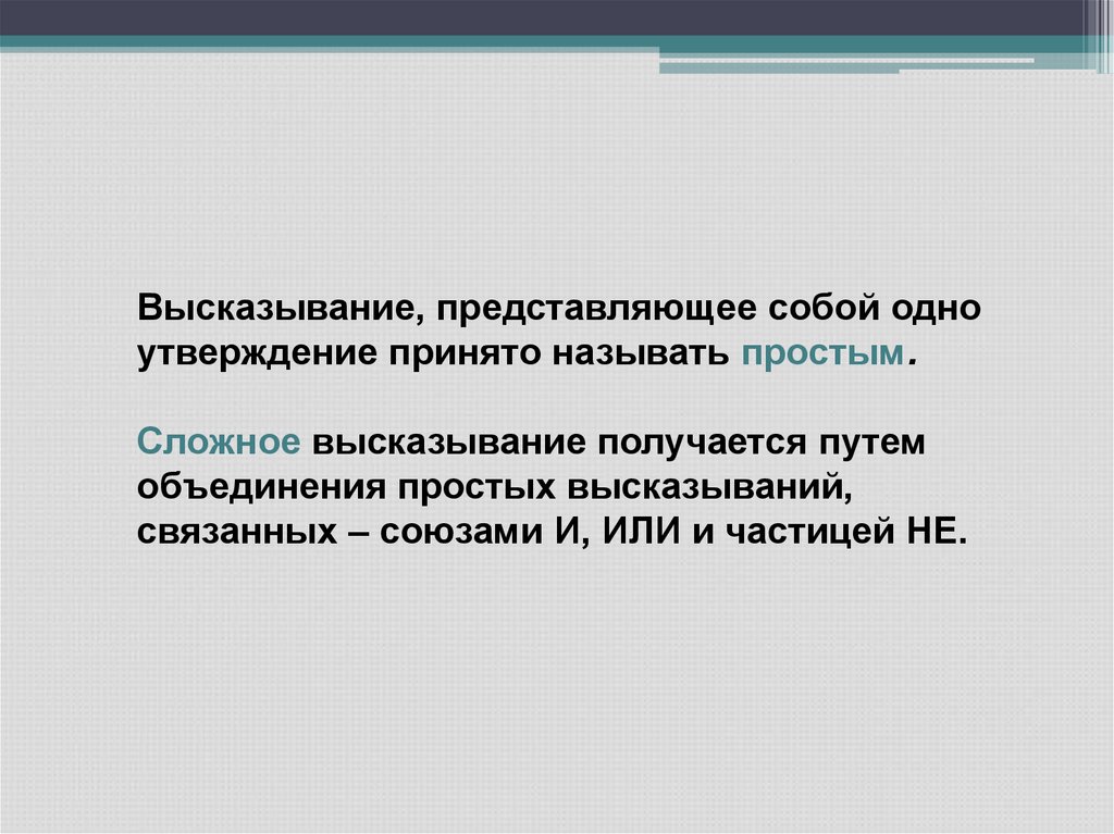 Высказывание, представляющее собой одноутверждение принято называть простым.