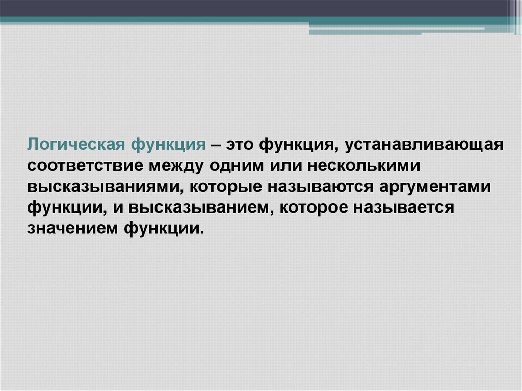 Логическая функция – это функция, устанавливающаясоответствие между одним или несколькими