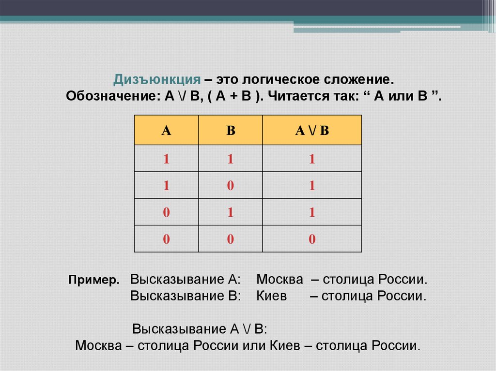 С помощью алгебры логики над высказываниями можновыполнять следующие операции: