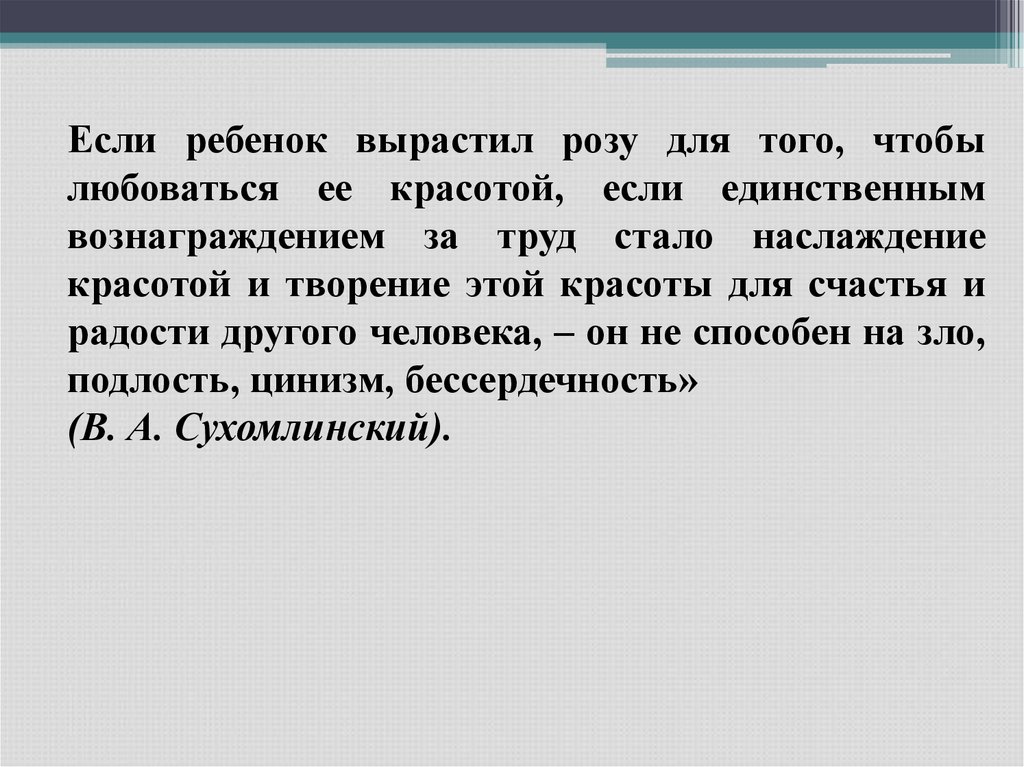 Если ребенок вырастил розу для того, чтобылюбоваться ее красотой, если единственным