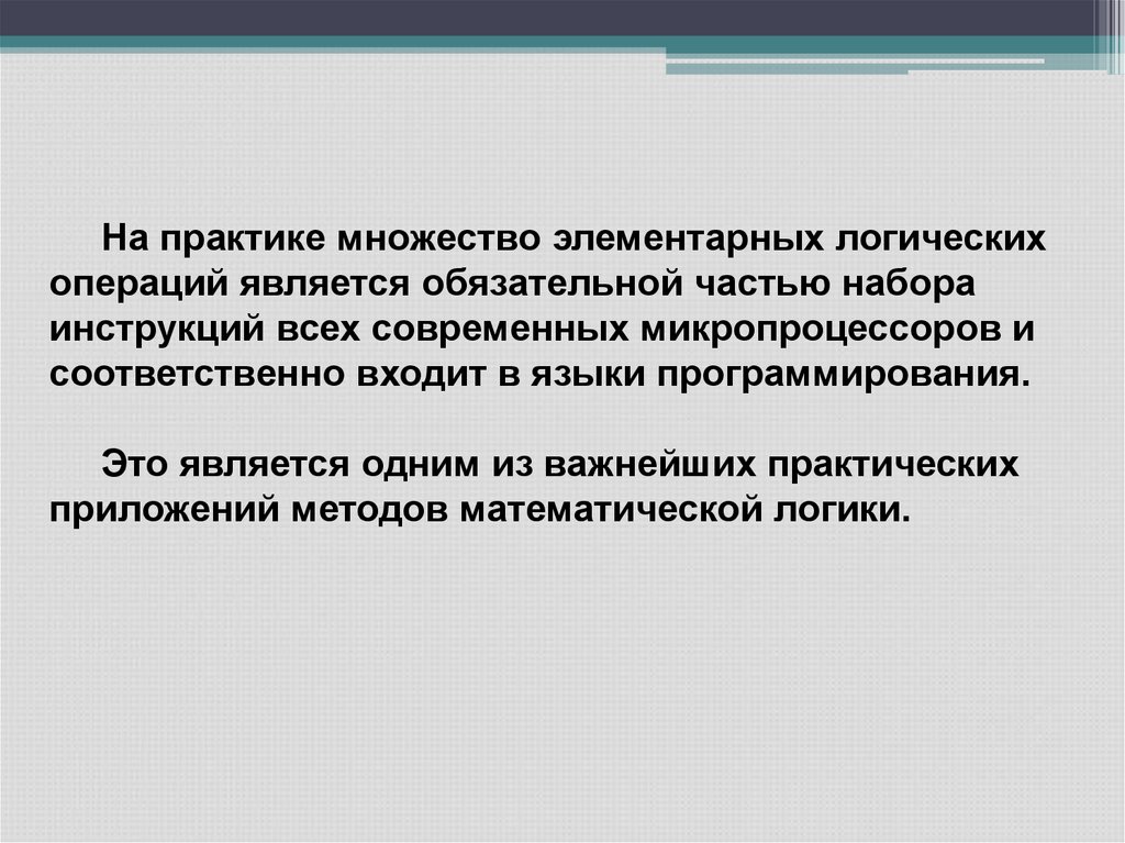 На практике множество элементарных логическихопераций является обязательной частью набора