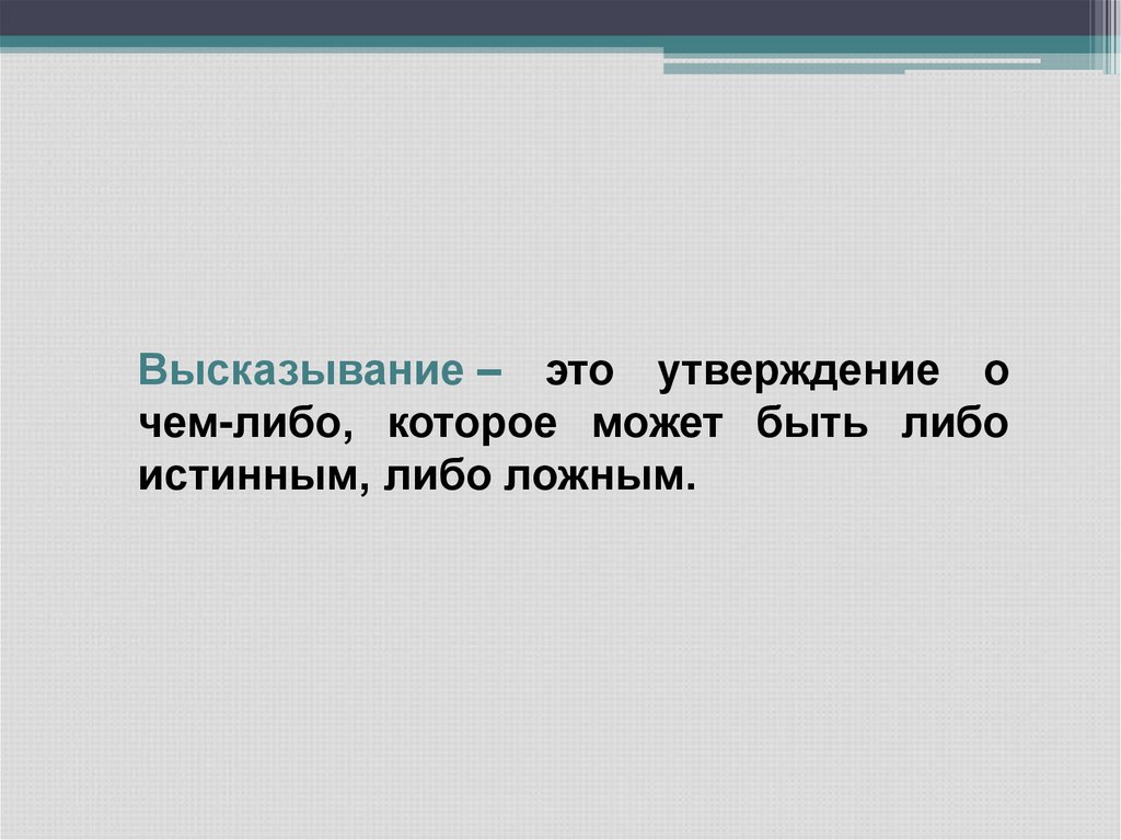 Высказывание – это утверждение очем-либо, которое может быть либо