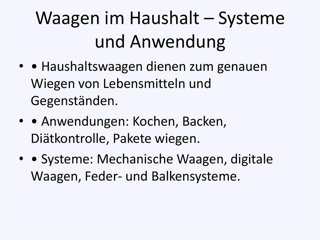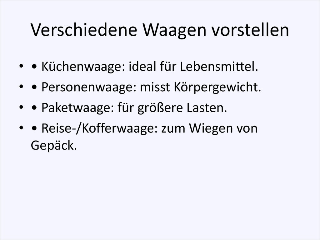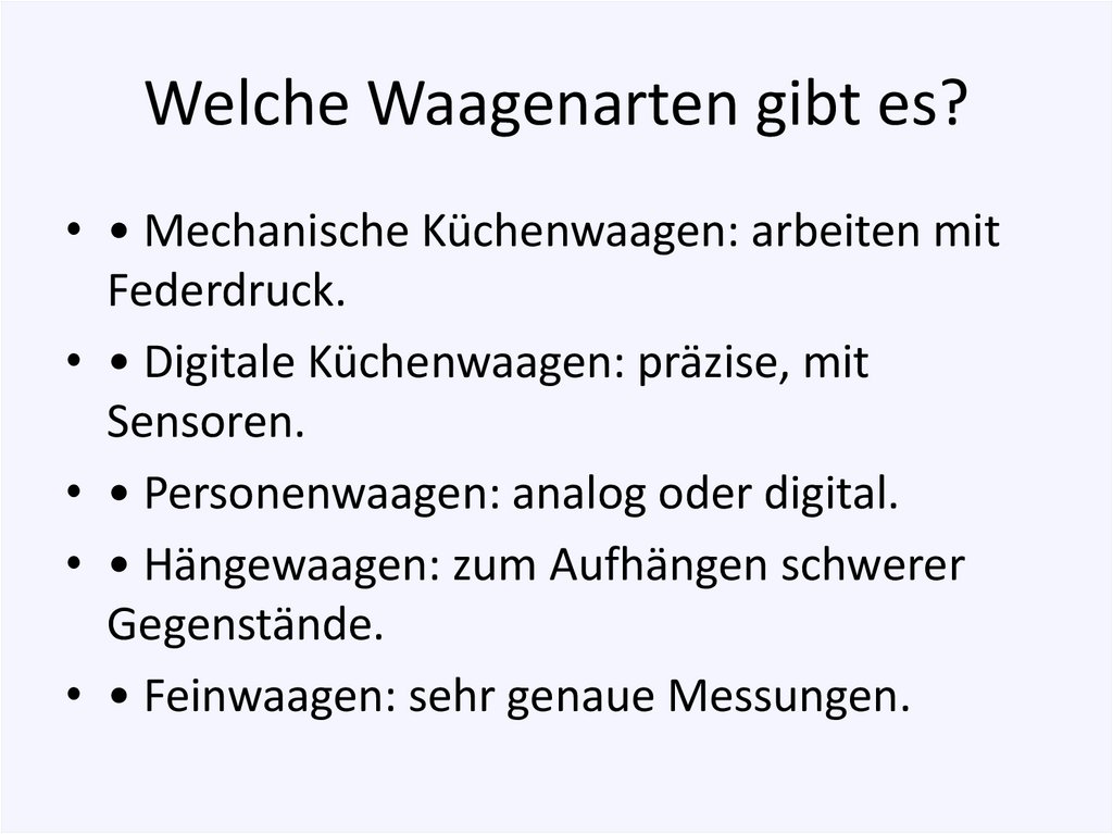 Verschiedene Waagen vorstellen• • Küchenwaage: ideal für Lebensmittel.
