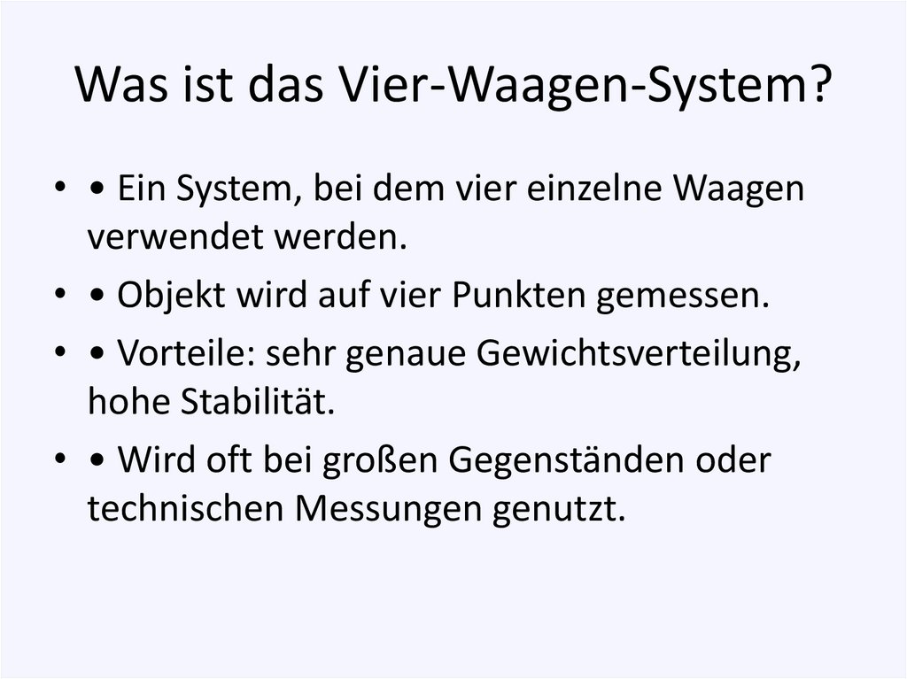 Was ist das Vier-Waagen-System?• • Ein System, bei dem vier einzelne Waagen