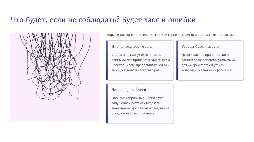 Что будет, если не соблюдать? Будет хаос и ошибкиНарушение стандартов влечет за собой серьезные риски и негативные последствия: