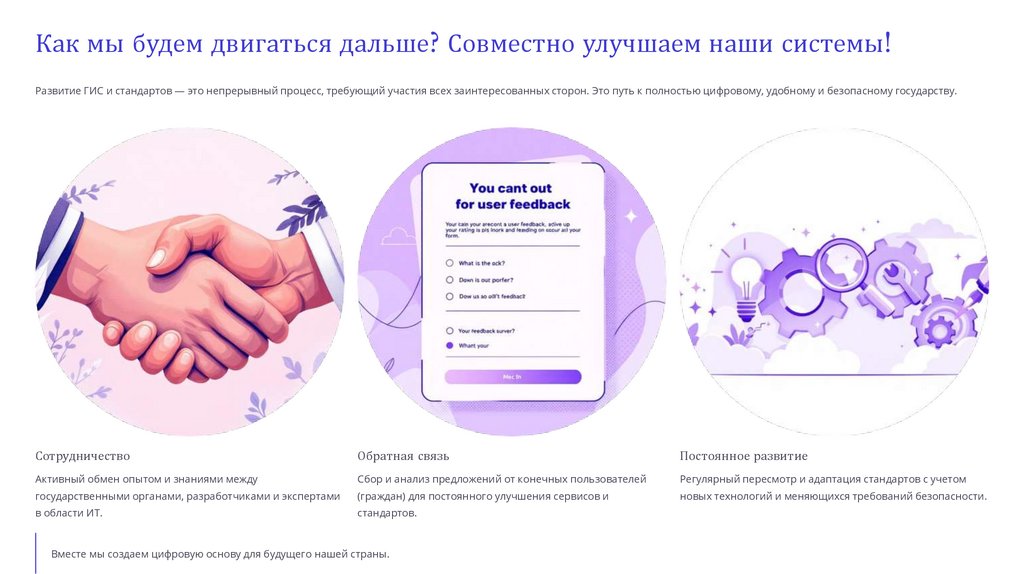 Как мы будем двигаться дальше? Совместно улучшаем наши системы!Развитие ГИС и стандартов — это непрерывный процесс, требующий участия всех заинтересованных сторон. Это путь к полностью цифровому, удобному и безопасному государству.