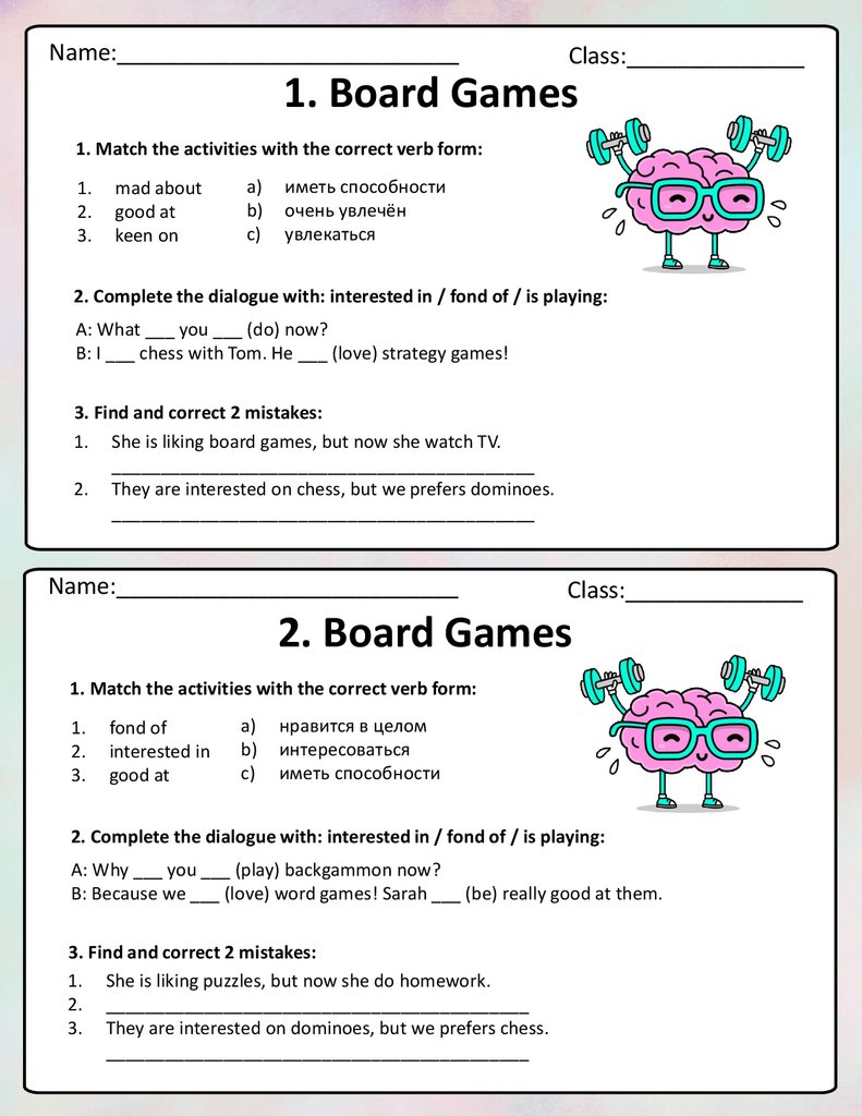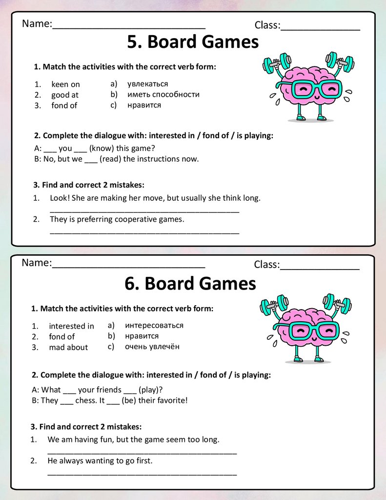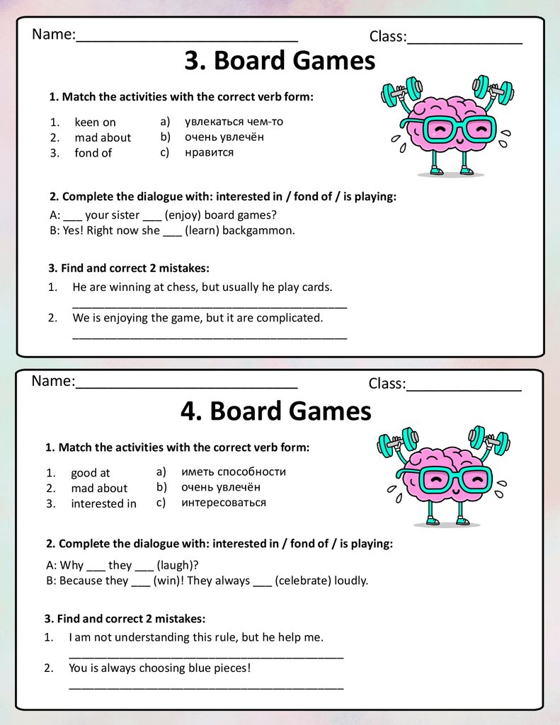 Карточки-пятиминутки по теме Board Games к УМК Spo