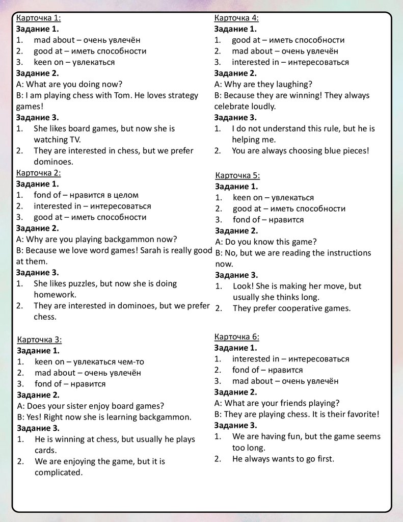 Карточка 1:Карточка 4: