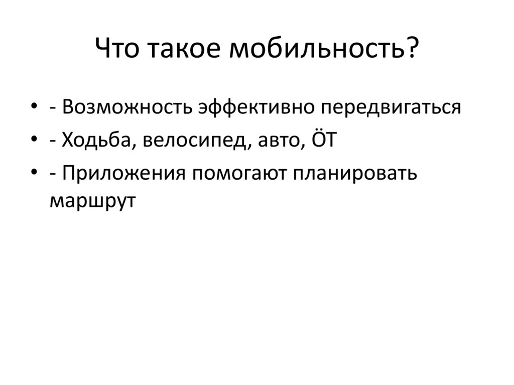 Что такое мобильность?• - Возможность эффективно передвигаться