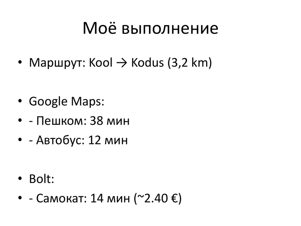 Моё выполнение• Маршрут: Kool → Kodus (3,2 km)