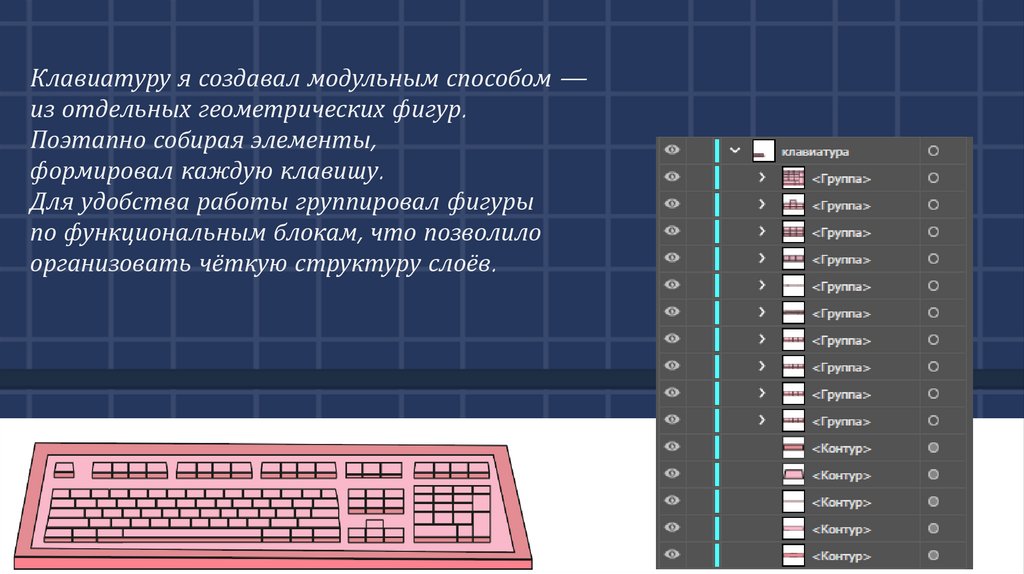 Клавиатуру я создавал модульным способом —из отдельных геометрических фигур.