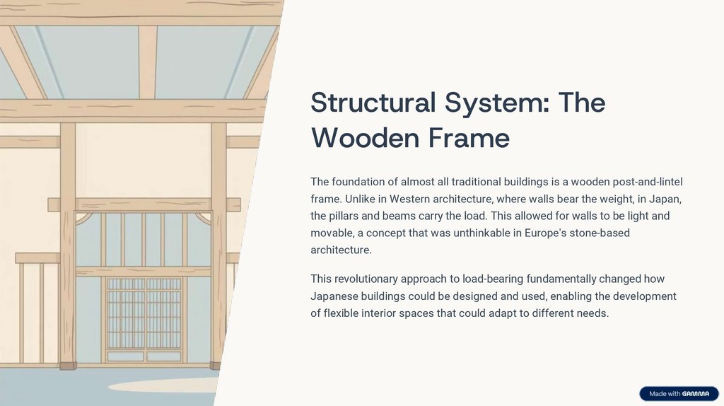 frame. Unlike in Western architecture, where walls bear the weight, in Japan,