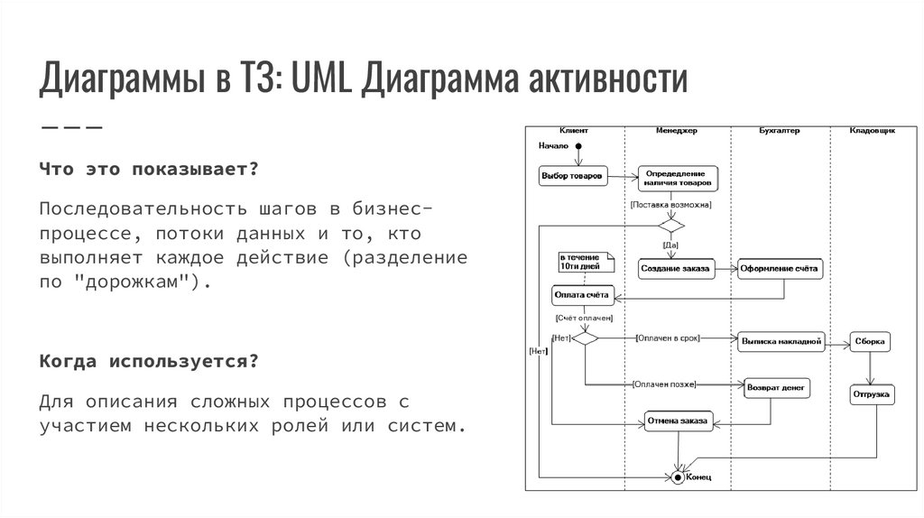 Диаграммы в ТЗ: UML Диаграмма активностиЧто это показывает?