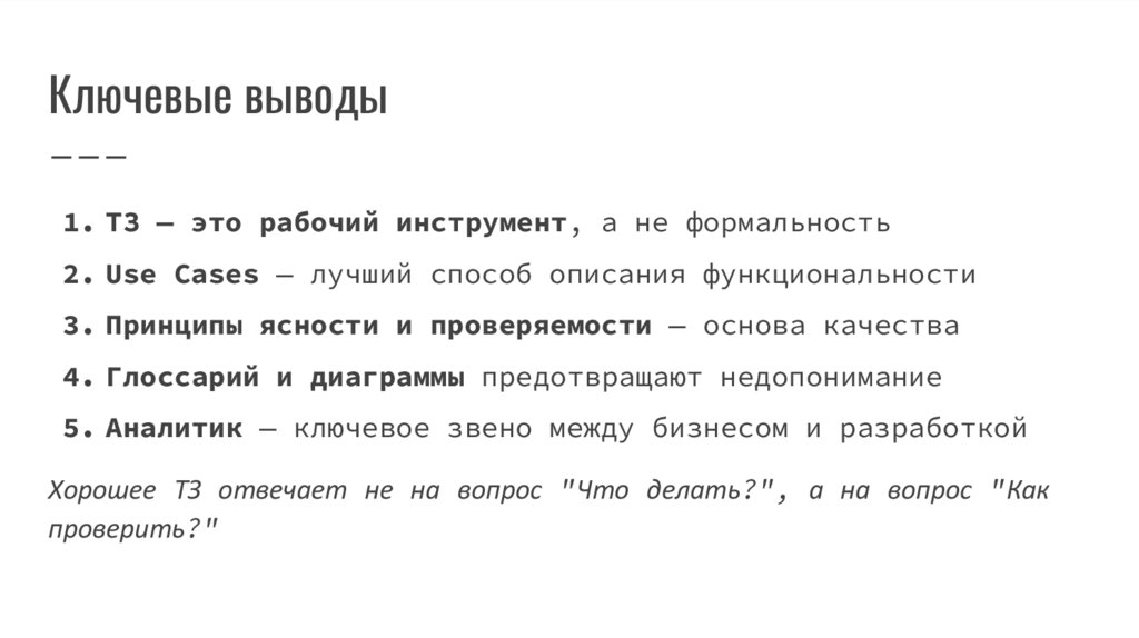 Ключевые выводы1. ТЗ — это рабочий инструмент, а не формальность