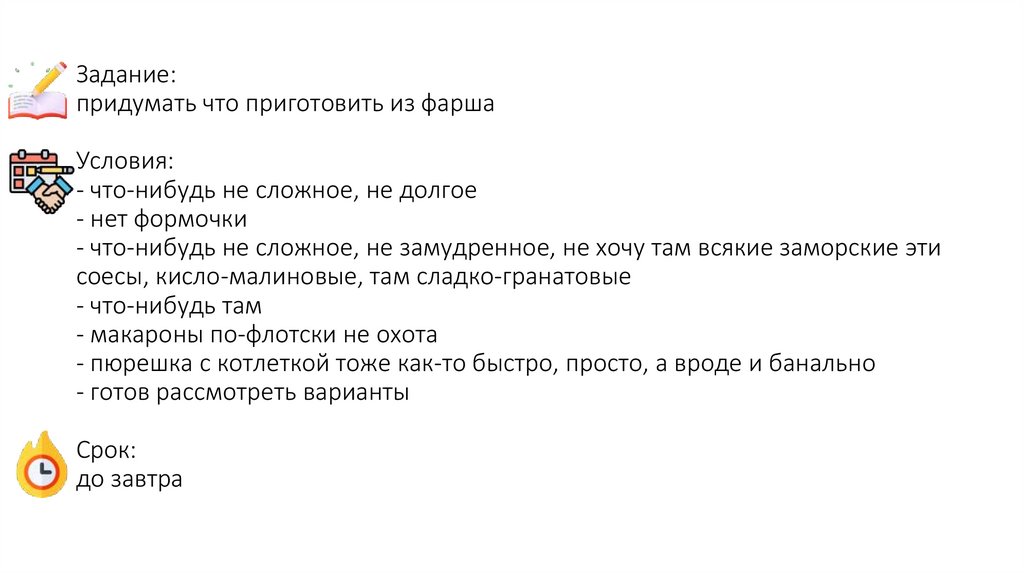 1. Задание: придумать что приготовить из фарша Условия: - что-нибудь не сложное, не долгое - нет формочки - что-нибудь не сложное,