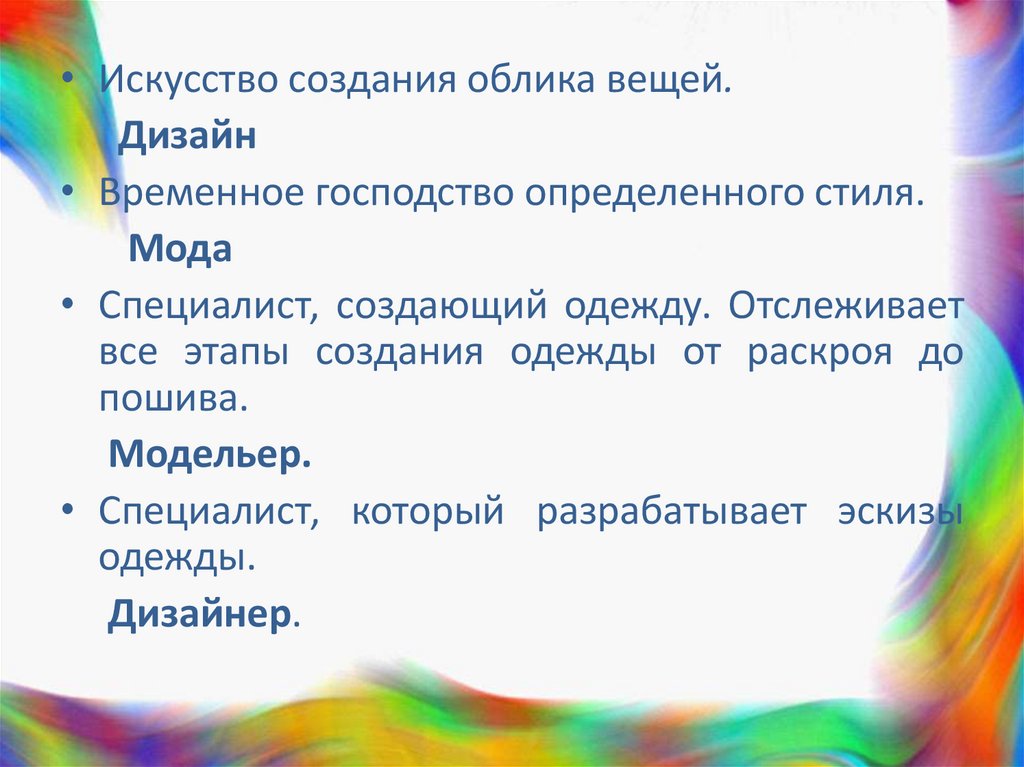 • Специалист, создающий одежду. Отслеживает