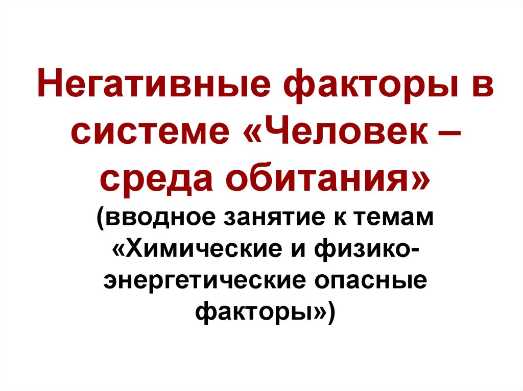 1. Негативные факторы в системе «Человек – среда обитания» (вводное занятие к темам «Химические и физико-энергетические опасные
