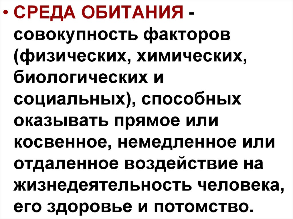 • СРЕДА ОБИТАНИЯ совокупность факторов(физических, химических,