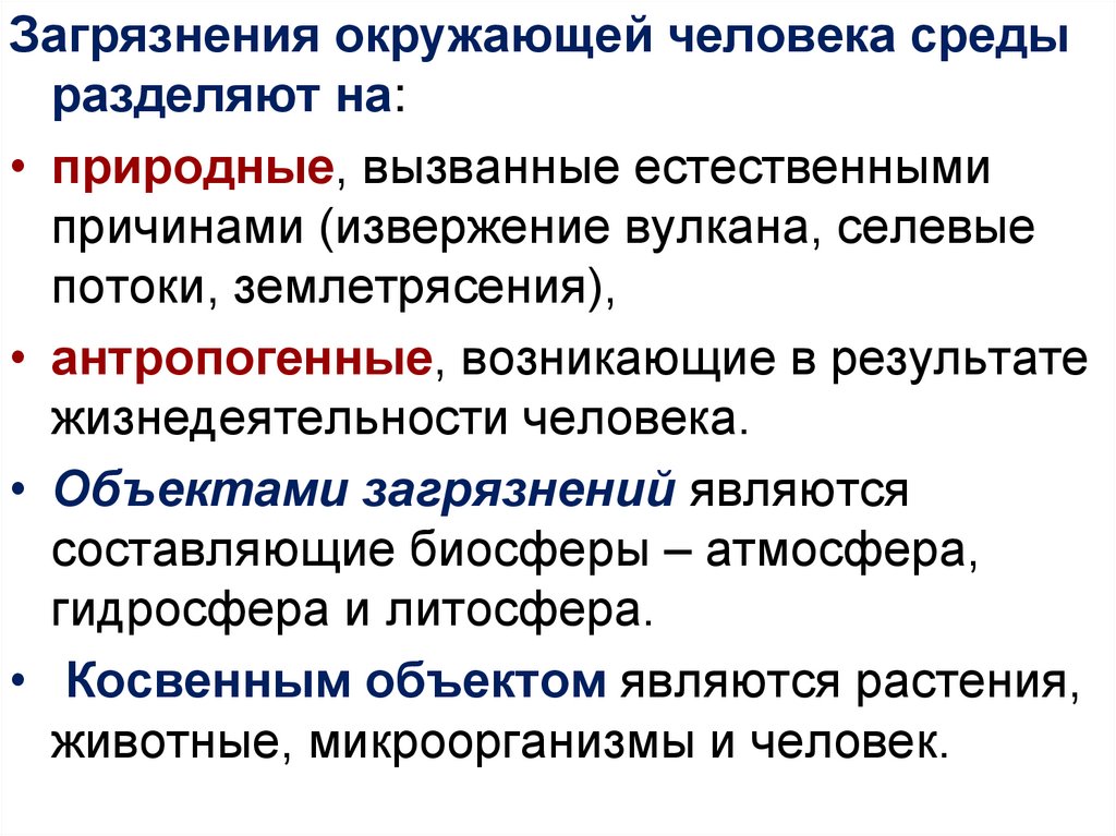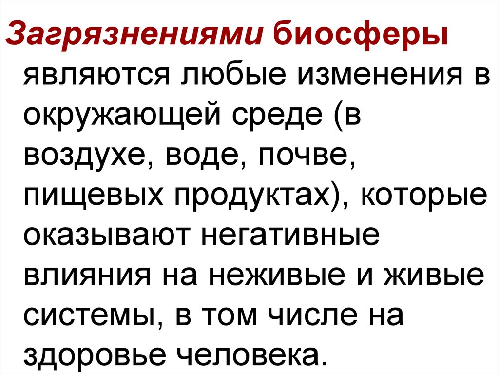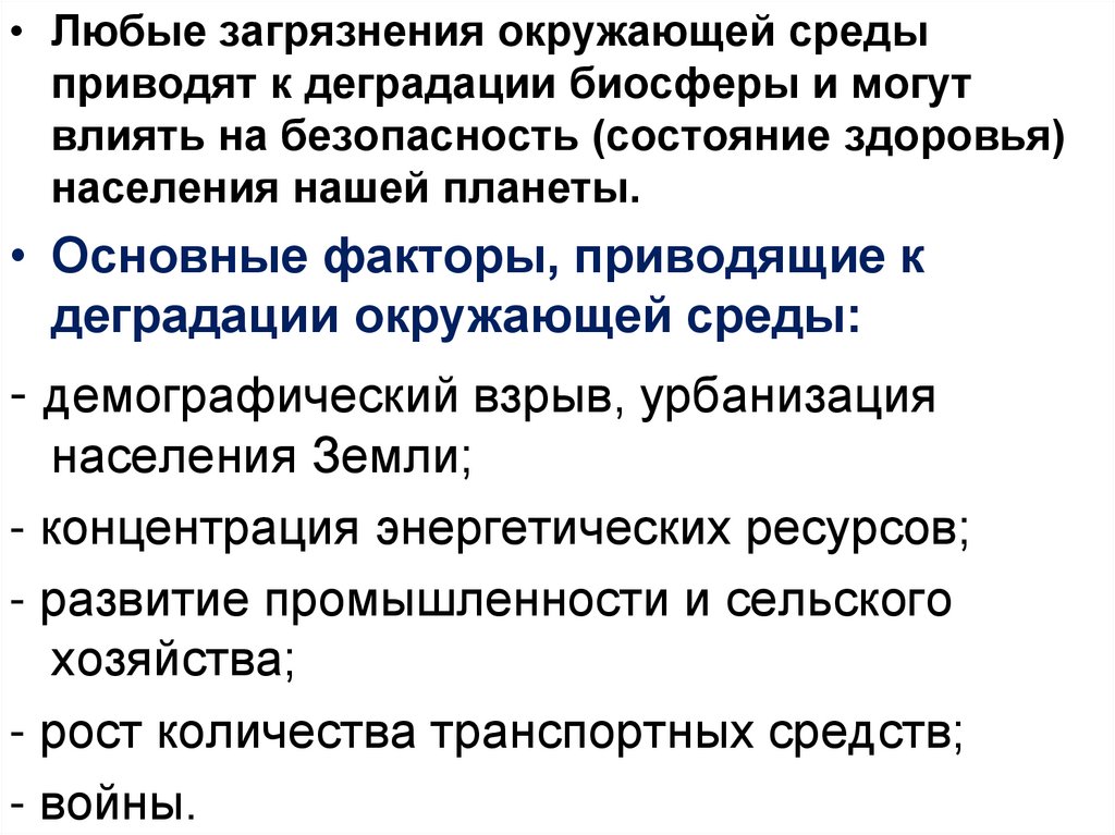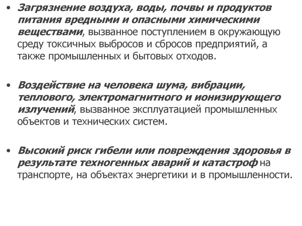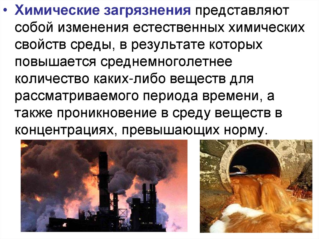 • Загрязнение воздуха, воды, почвы и продуктовпитания вредными и опасными химическими