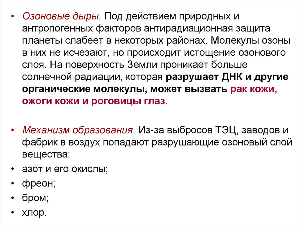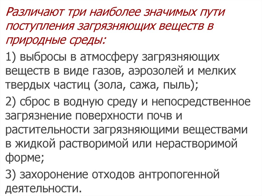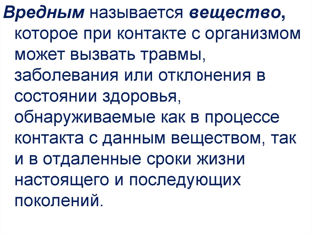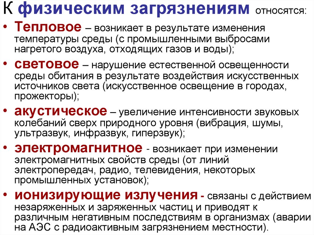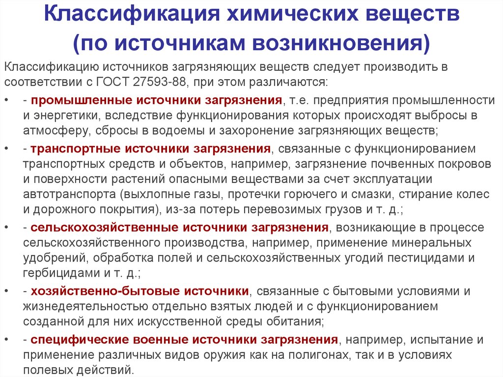• Загрязнение воздуха, воды, почвы и продуктовпитания вредными и опасными химическими