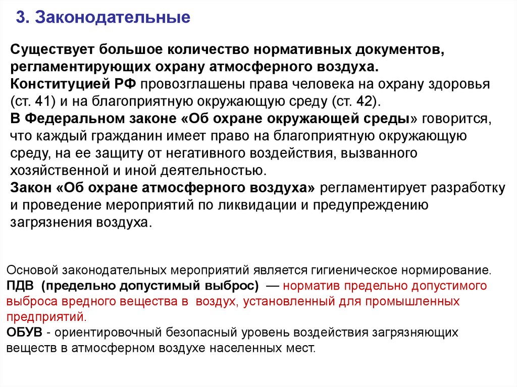 Основой законодательных мероприятий является гигиеническое нормирование.