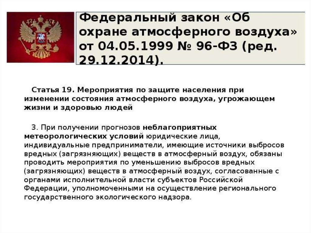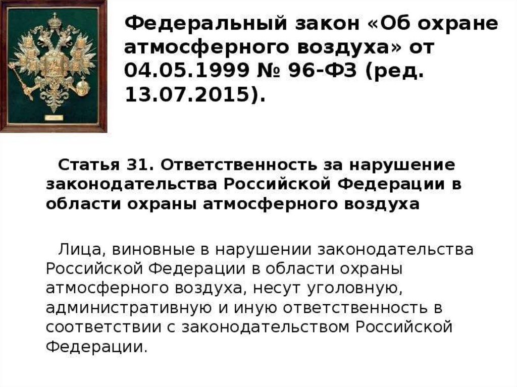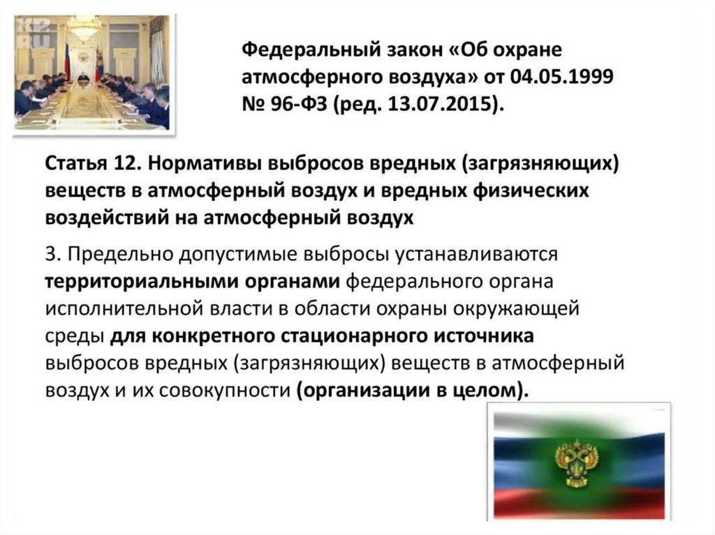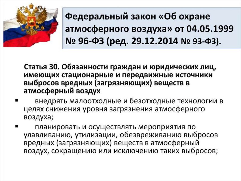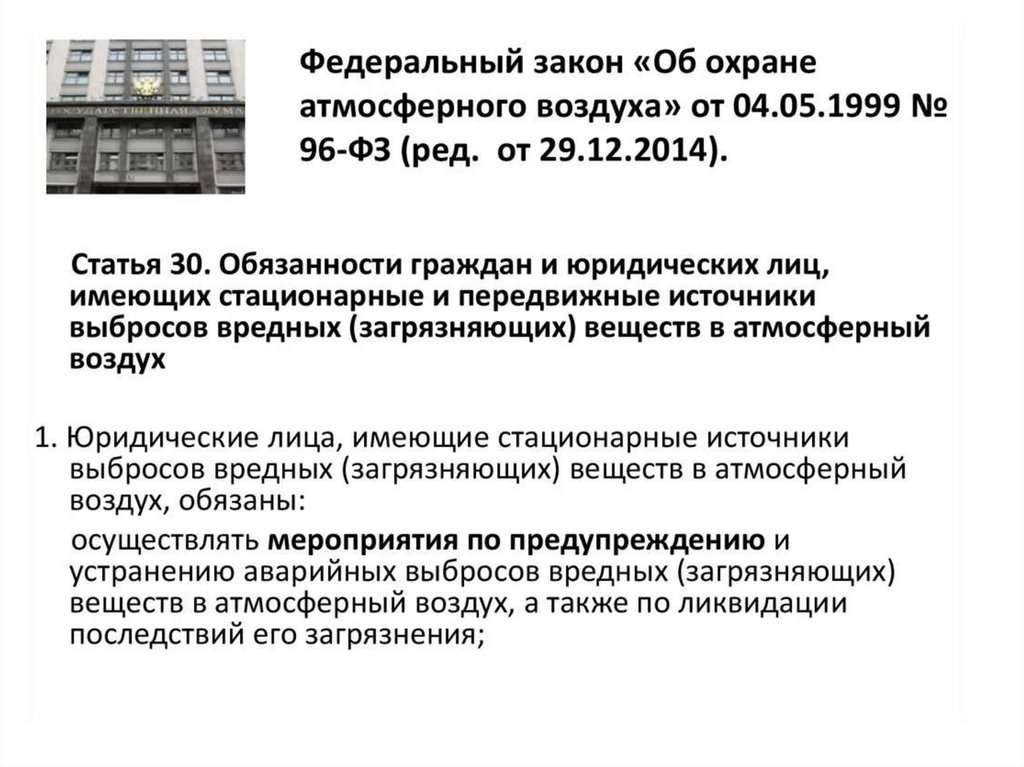 Закон «Об охране атмосферного воздуха» регламентирует разработку