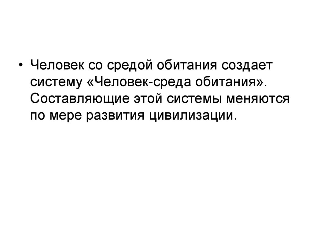 • Человек со средой обитания создаетсистему «Человек-среда обитания».