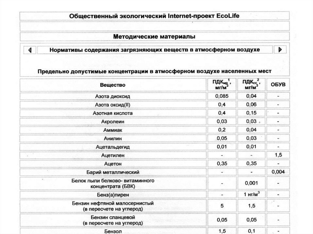 ОБУВ - ориентировочный безопасный уровень воздействия загрязняющих