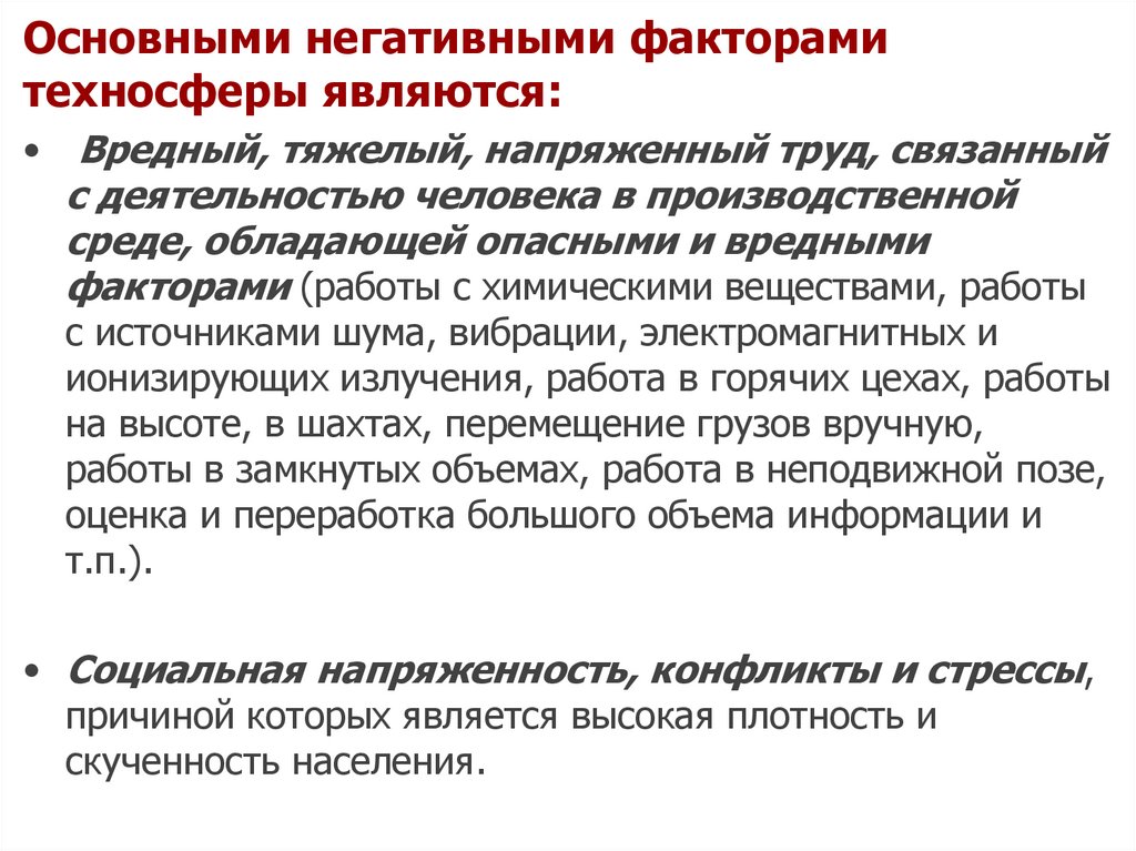 прошлом, добавляются факторы, находящиеся в техносфере. Человек